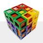 Ce puzzle porte le classique Soma Cube à un tout nouveau niveau. Il est composé de deux ensembles de pièces de Soma entrelacées, l'un solide et l'autre creux. À l'extérieur, nous trouvons sept pièces creuses qui forment la première couche du défi. À l'intérieur de celles-ci se cachent sept autres pièces solides de Soma, conçues pour s'emboîter précisément dans les creux.